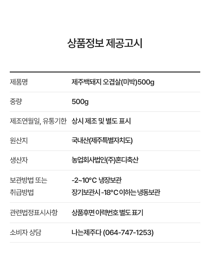 | 품목 또는 명칭 | 백돼지 오겹살(미박) 500g |