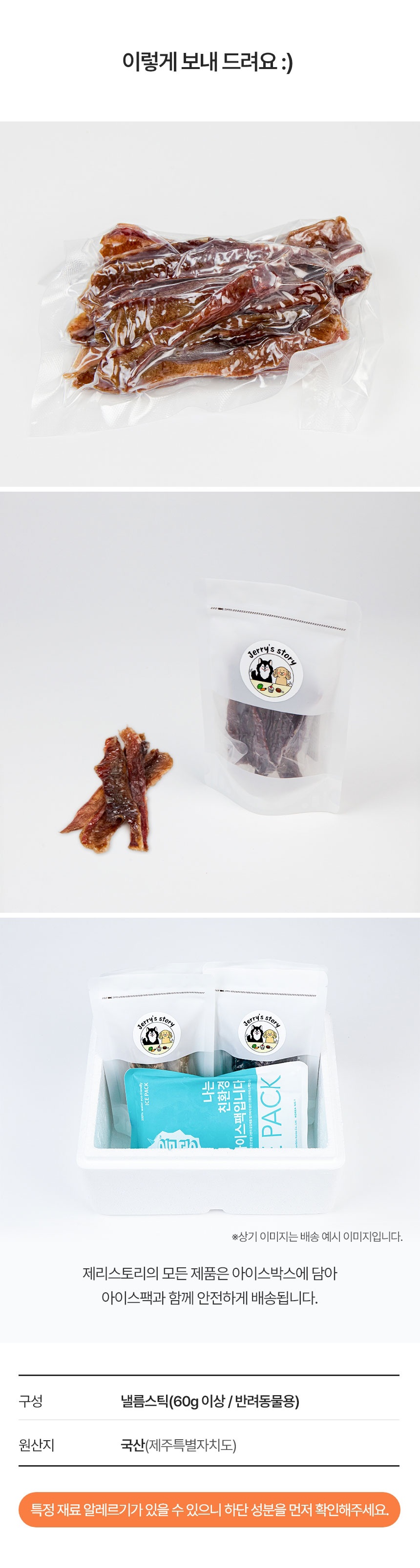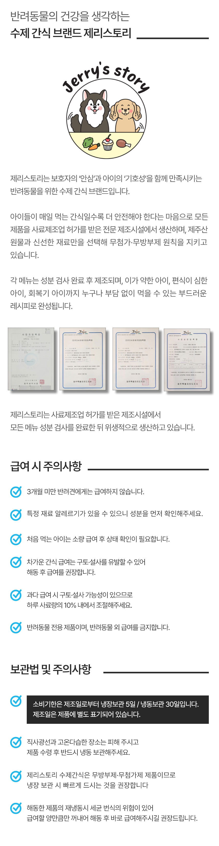 - 제리스토리는 주문확인 후 간식을 제조합니다.(주문 후 3일이내 우체국 택배 익일특급 발송)