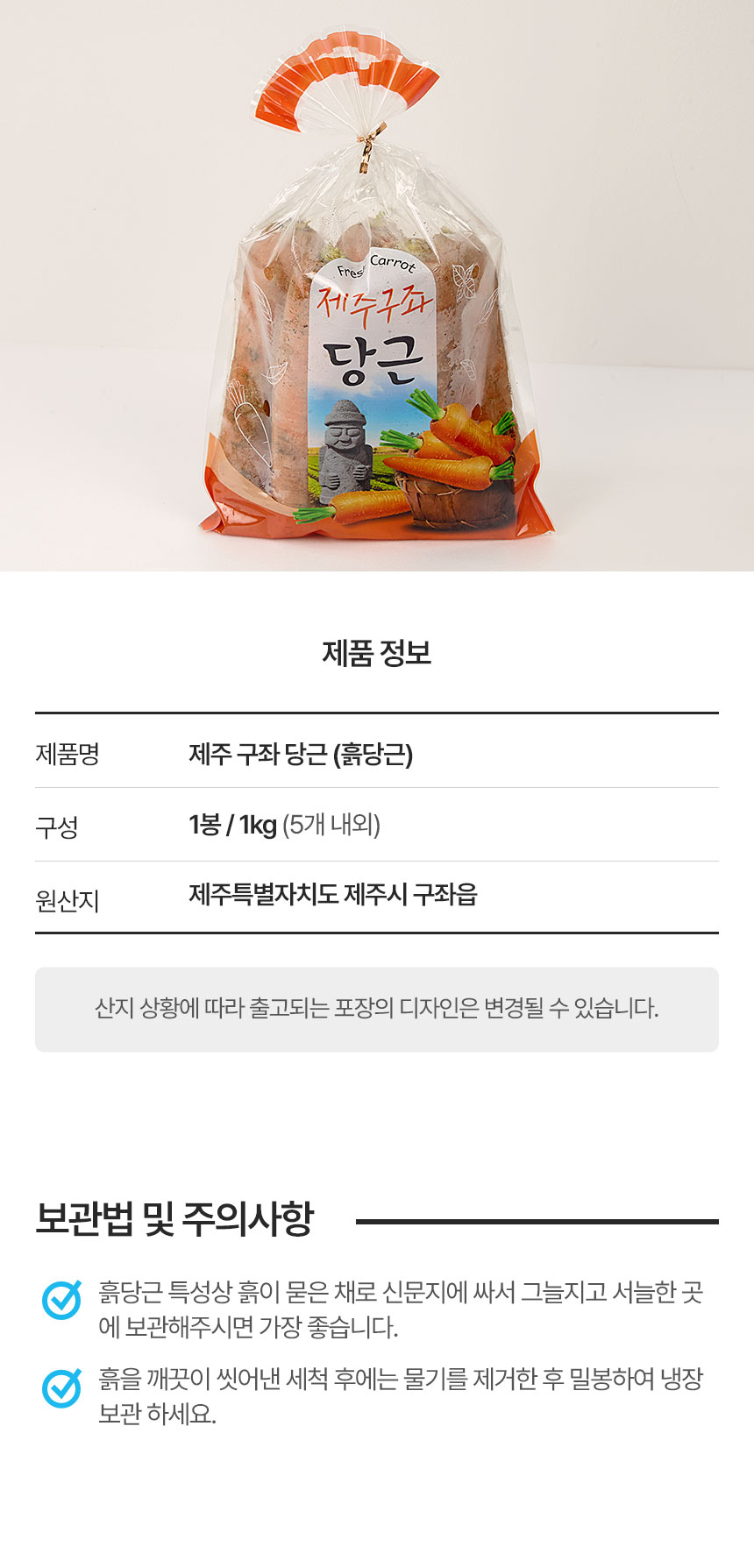 | 상품구성 | 제주 흙당근 1kg |