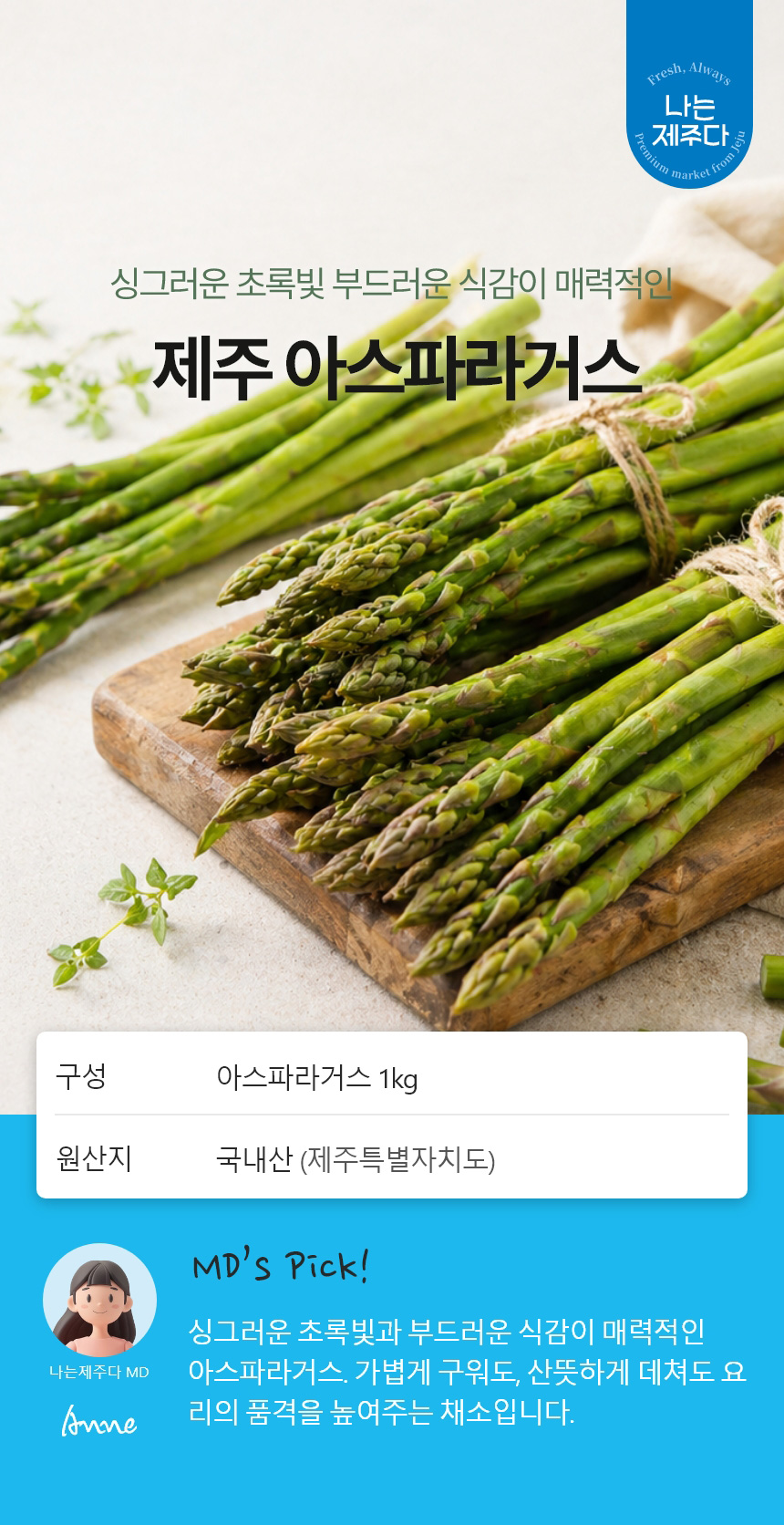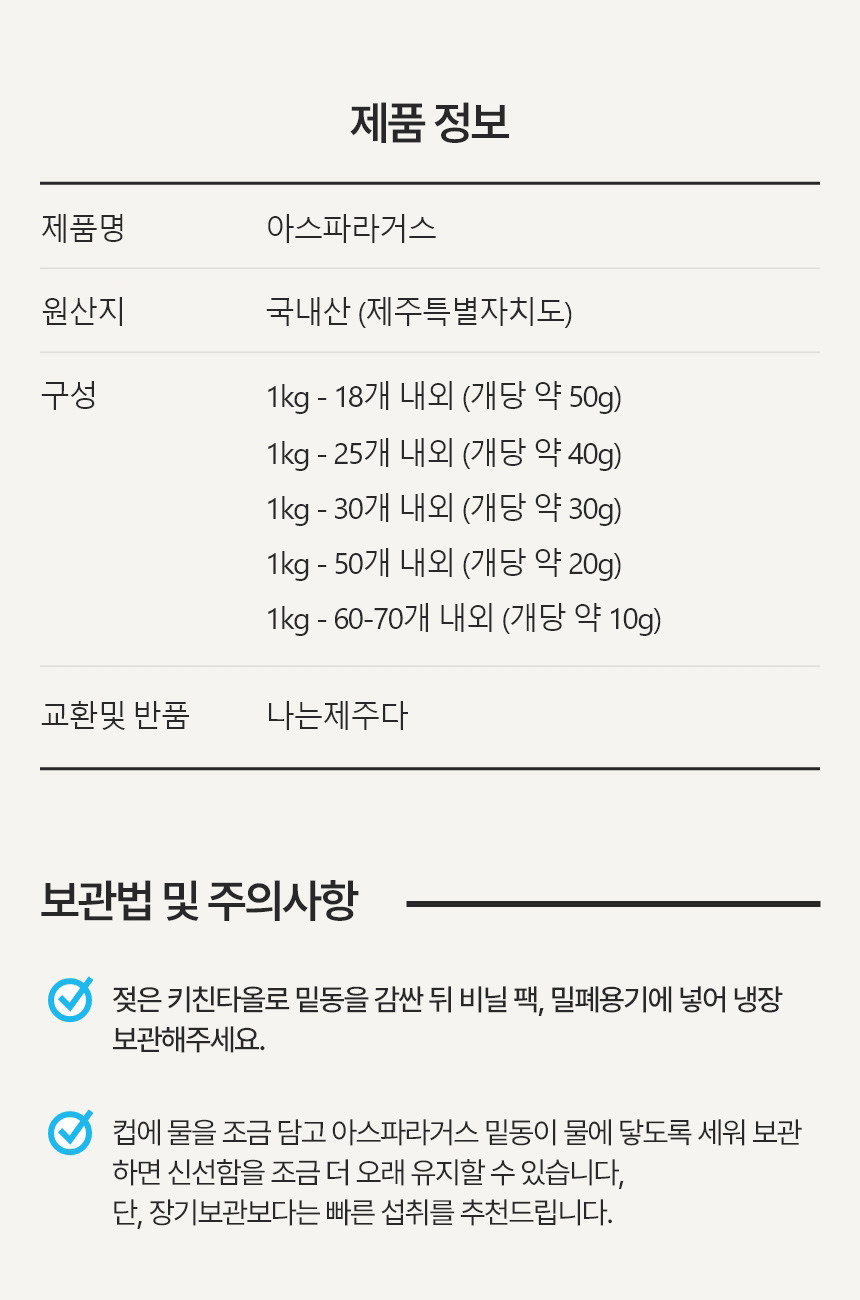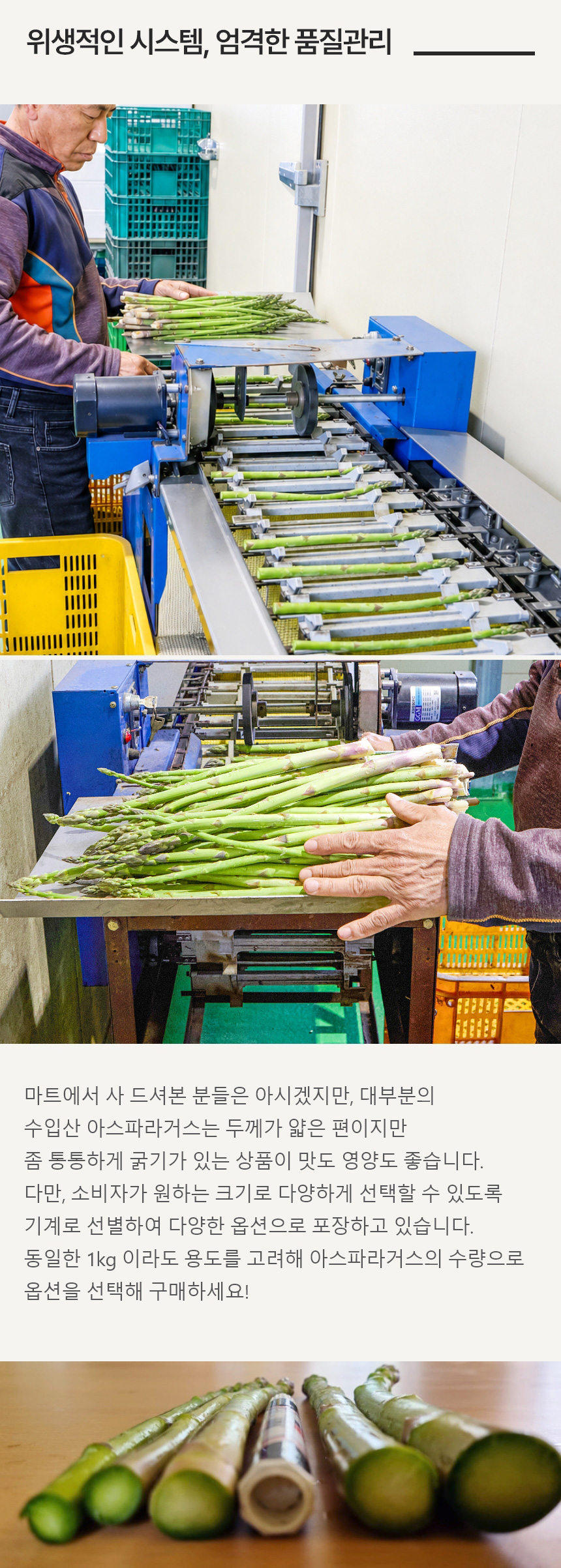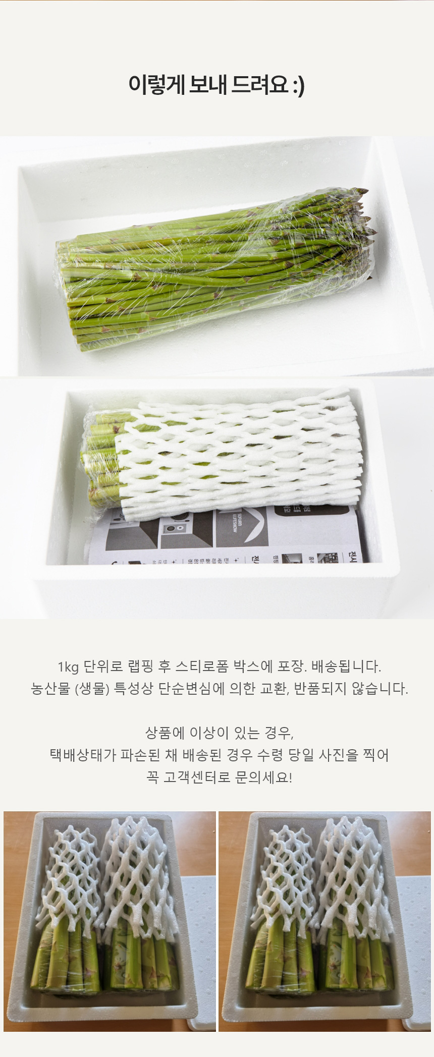 | 포장단위별 내용물의 용량(중량),수량,크기 | 아스파라거스 1kg/1box |
