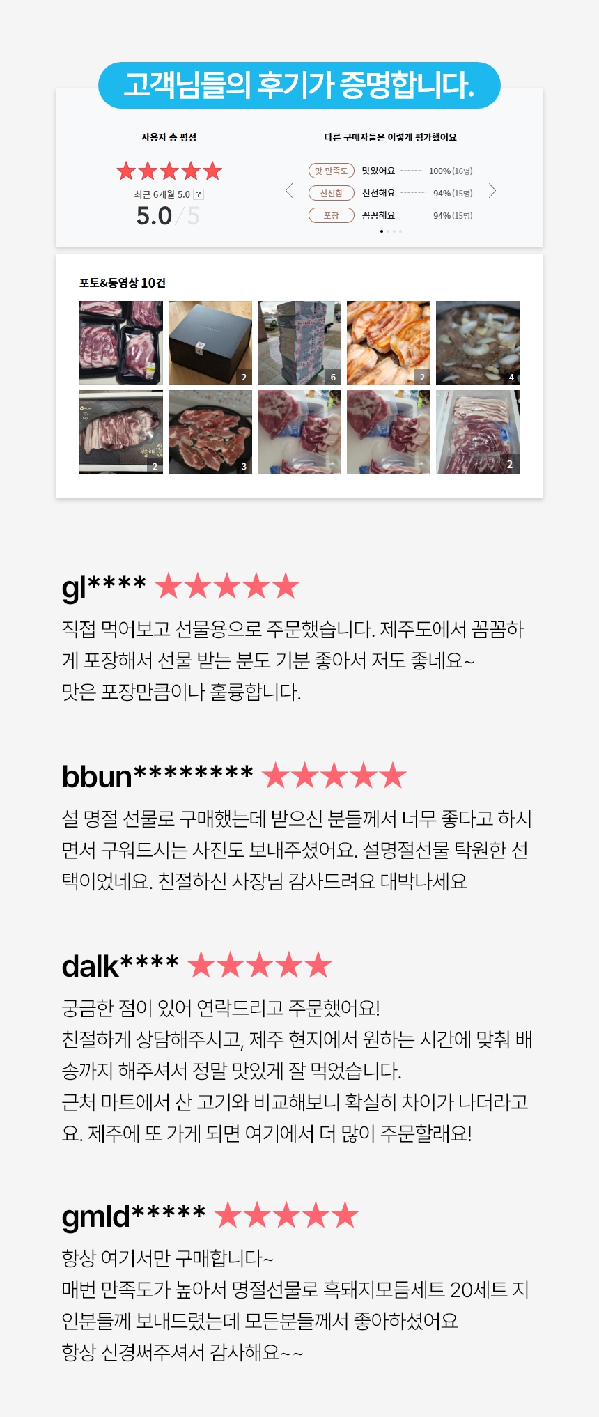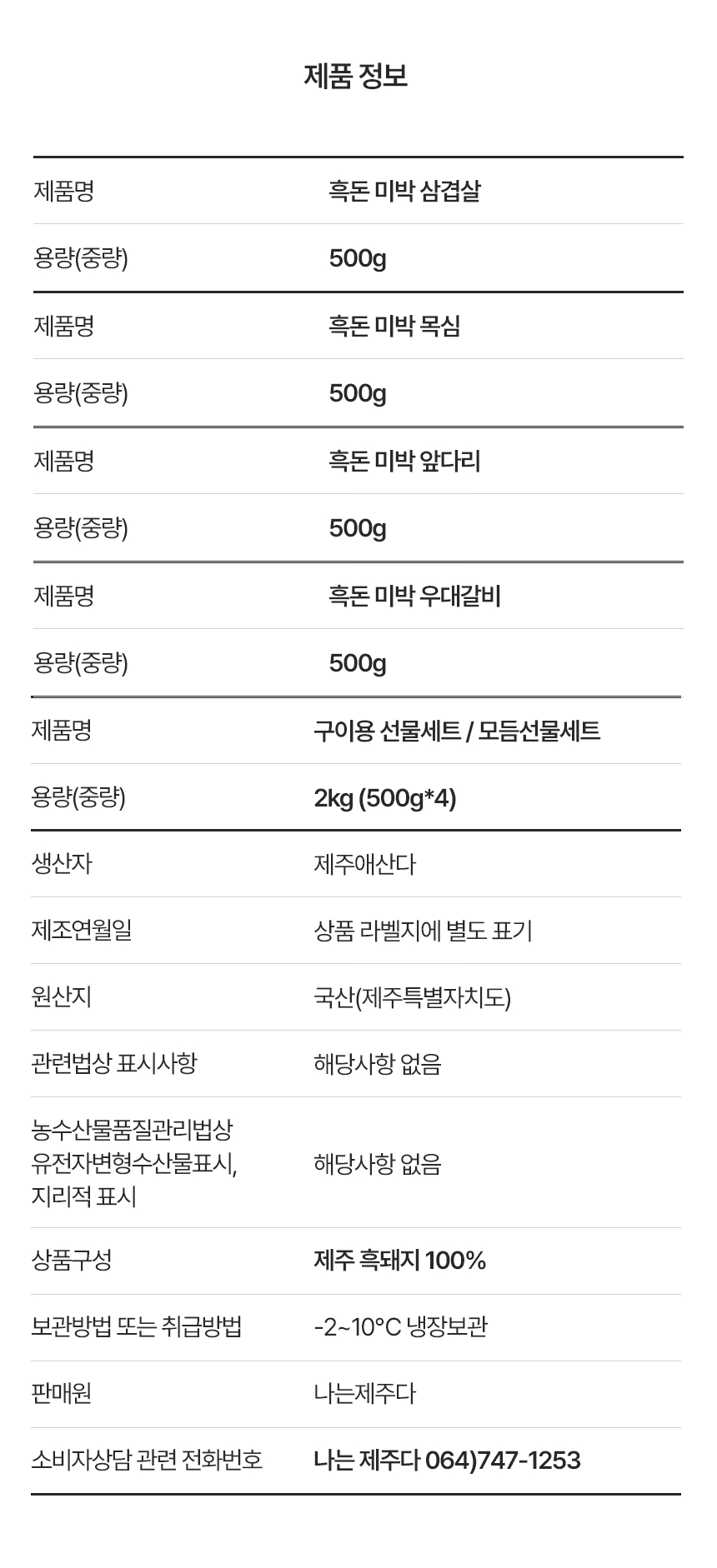 | 상품구성 | 제주 흑돼지 100% |
