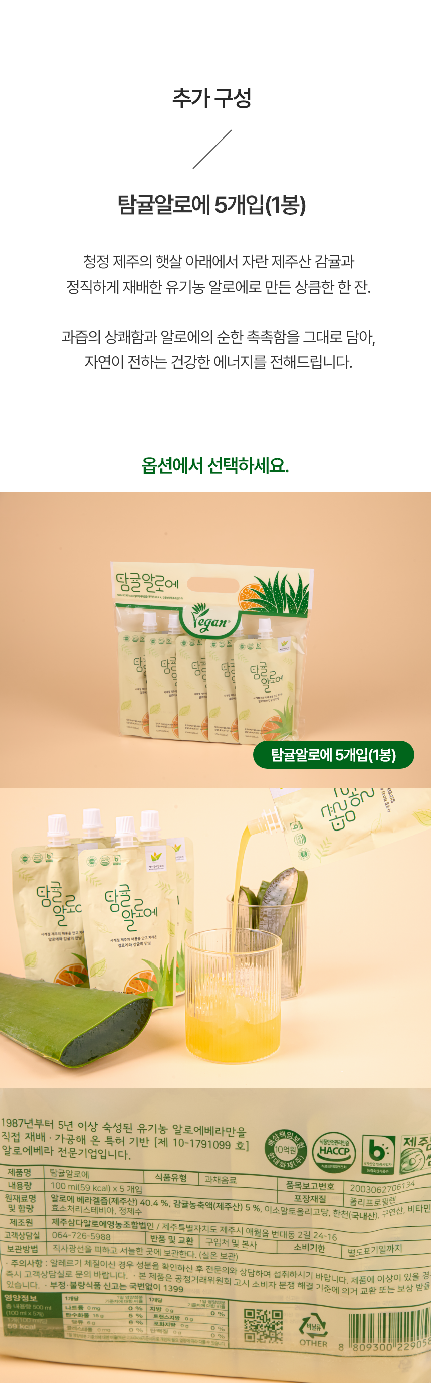 | 생산자 및 소재지 | 제주삼다알로에 영농조합법인 / 제주특별자치도 제주시 한림읍 옹포남1길 21 |