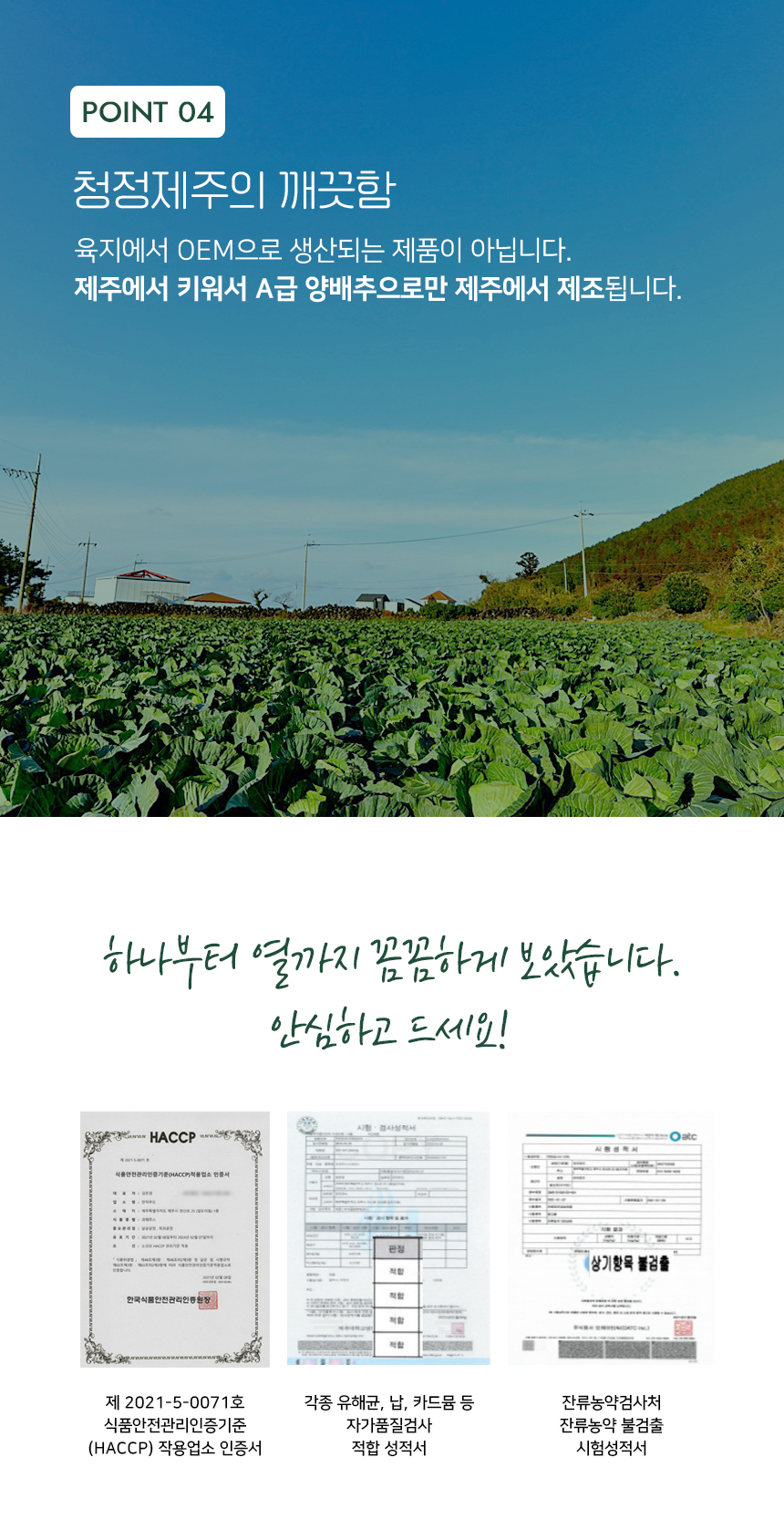 | 생산자 및 소재지 | 만덕푸드 - 제주특별자치도 제주시 애월읍 광령리 2330 |