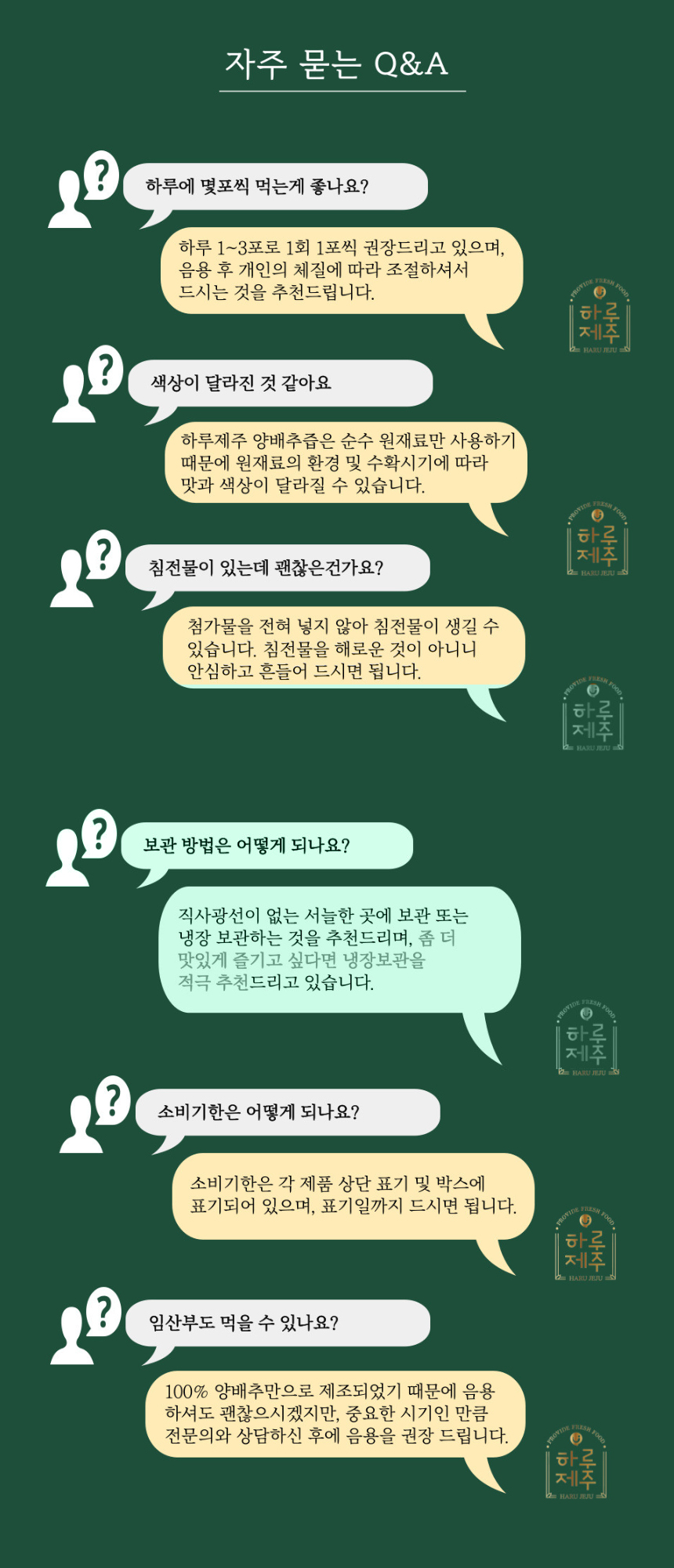 - 신선·냉장·냉동식품의 경우, 재판매가 불가능한 특성상 상품 발송 이후 취소·반품이 불가합니다. 단, 상품 하자(파손·변질 등)가 명확히 확인된 경우에 한해, 수령일로부터 48시간 이내 하자 상태를 확인되는 사진(2~3장 이상) 과 함께 홈페이지 환불 접수 혹은 나는 제주다 카카오톡 채널으로 접수하시면 됩니다.