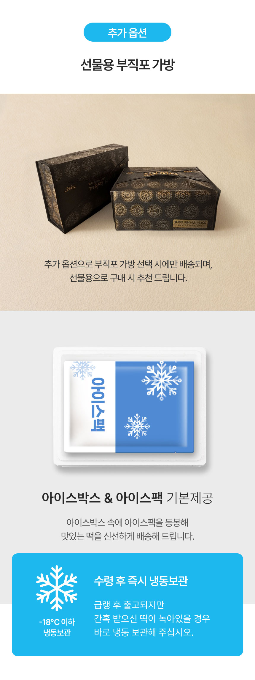 | 소비자안전을 위한 주의사항 | 배송 받은 즉시 냉동보관 부탁드립니다. |