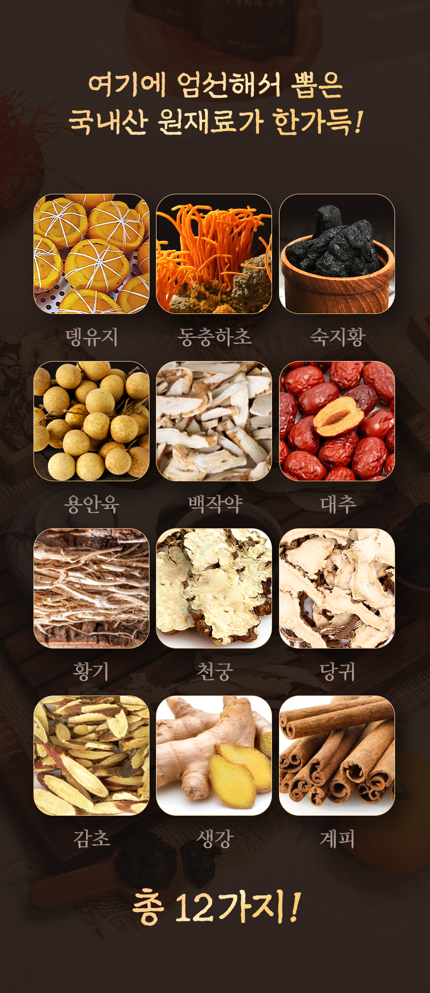 | 원재료명 및 함량 | 뎅유자추출액[정제수,뎅유자(국내산)],쌍화추출액[정제수,백작약(국내산),대추(국내산),숙지황(국내산),감초,황기(국내산),계피,당귀(국내산),생강(국내산),용안육,천궁(국내산),동충하초(국내산)] |