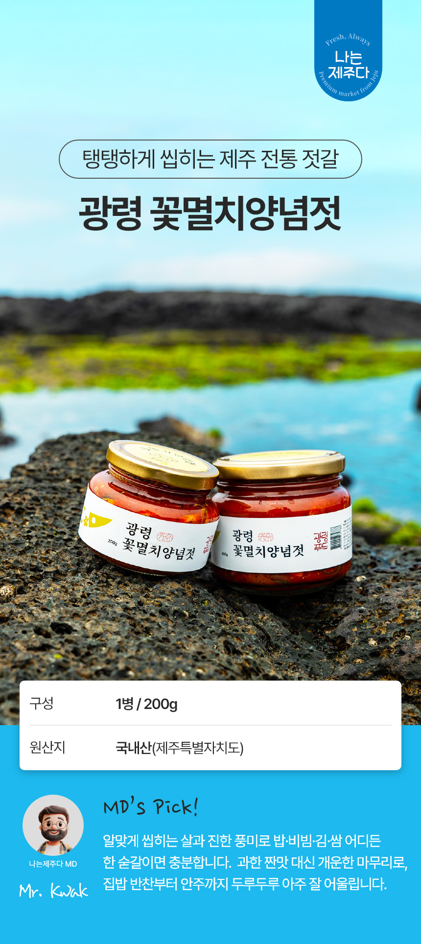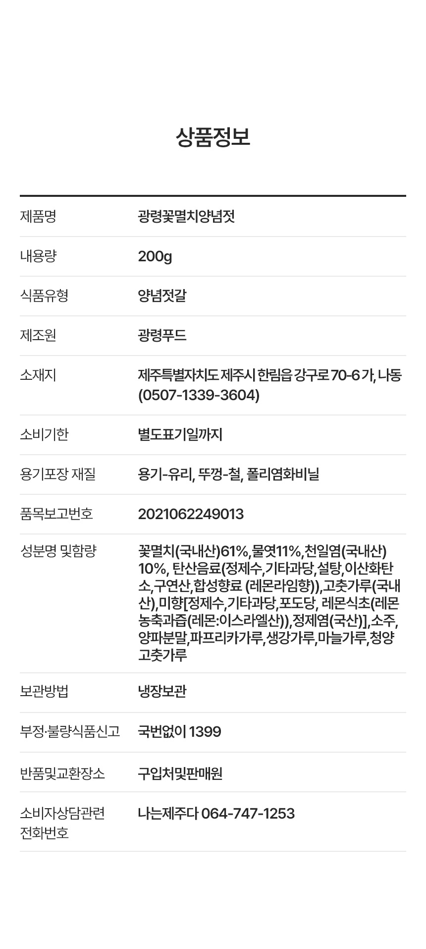 | 제품명 | 광령 제주 꽃멸치양념젓 200g |