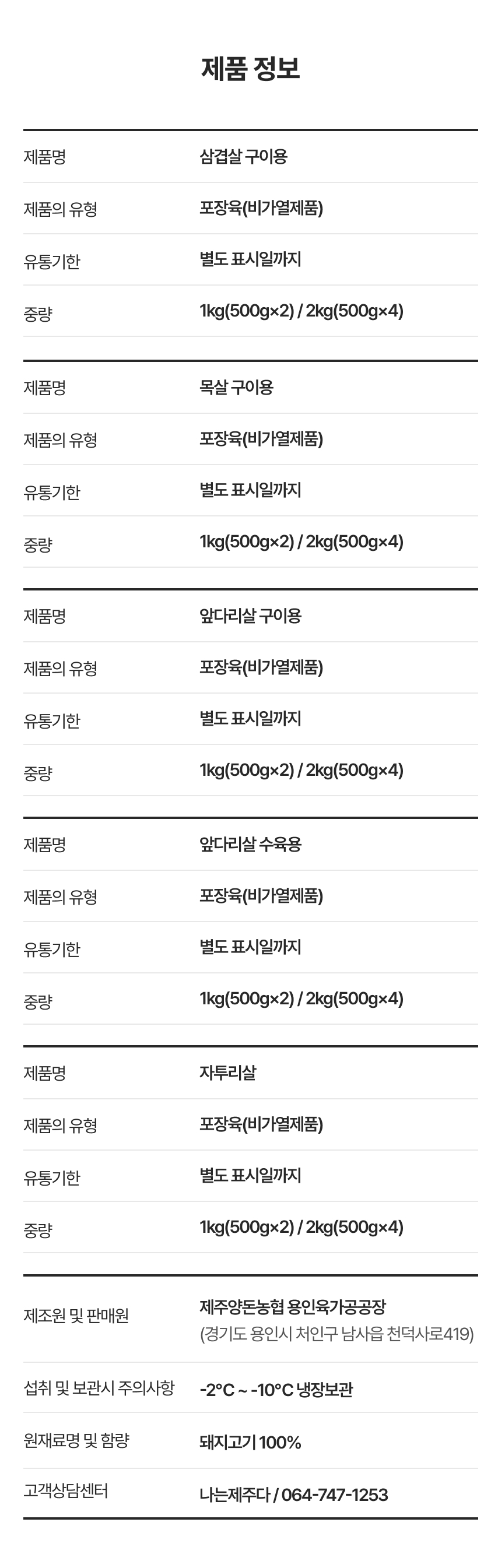 | 생산자,수입품의 경우 수입자를 함께 표기 | 제주양돈농협 용인육가공공장 |