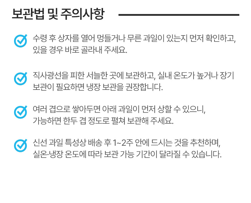 - 단순 변심, 개인적인 입맛 차이, 보관 부주의등 구매자 귀책 사유는 교환·반품 대상에 해당하지 않습니다.