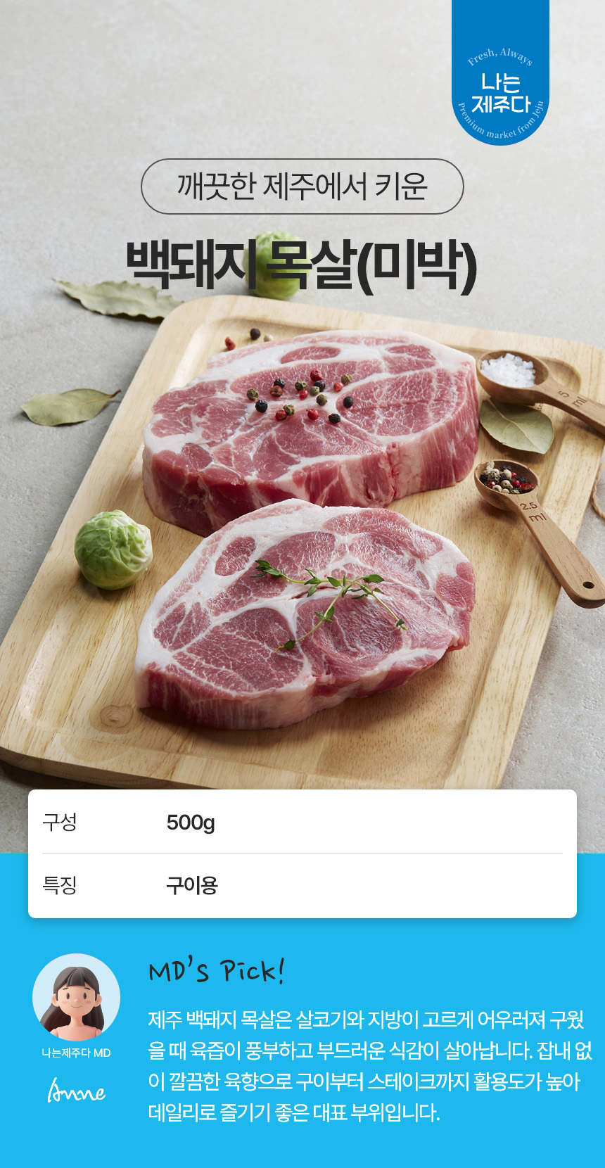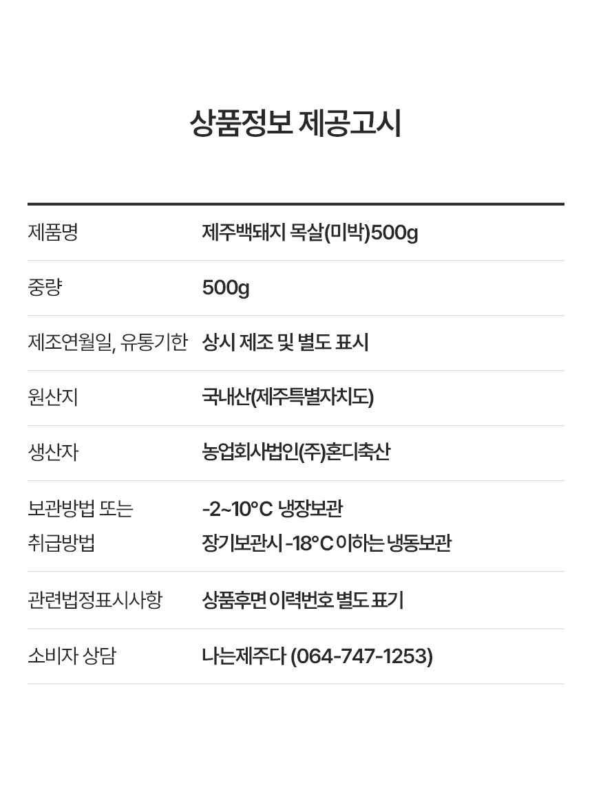 | 품목 또는 명칭 | 백돼지 목살(미박) 500g |