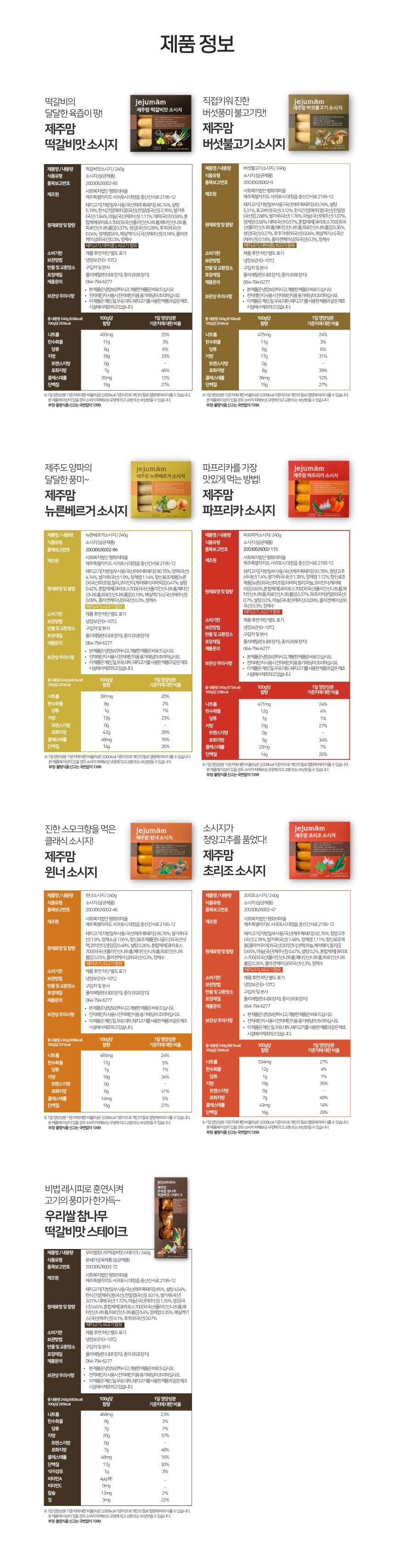 | 포장단위별 내용물의 용량(중량),수량 | 흑돼지 소시지 240g 2개, 떡갈비맛 스테이크 240g 2개 |