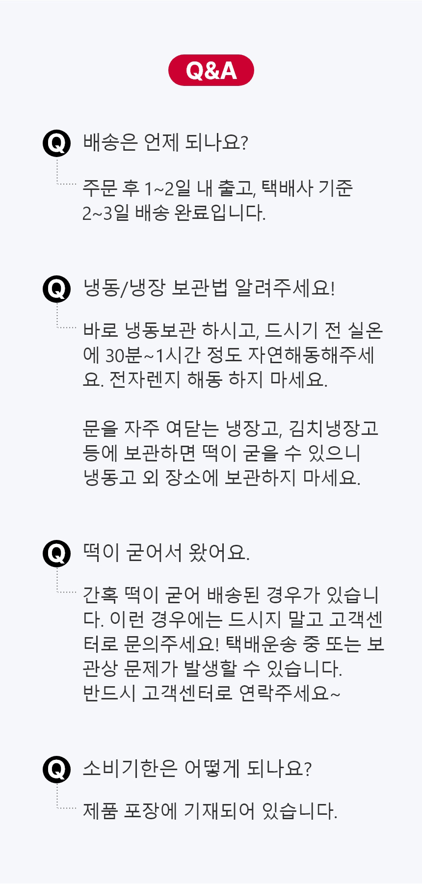 소비자안전을 위한 주의사항배송 받은 즉시 냉동보관 부탁드립니다
