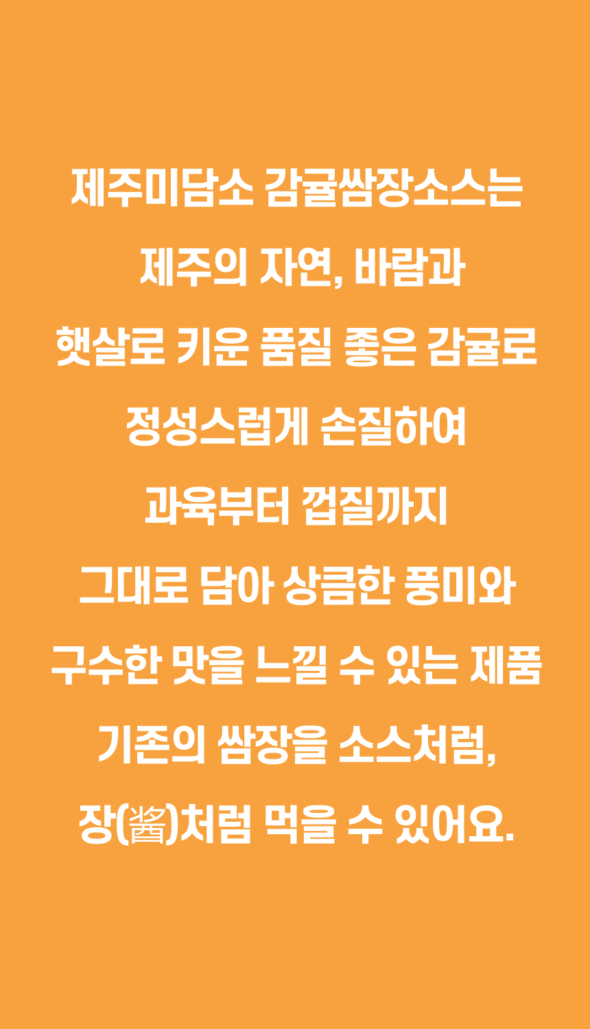 제주미담소 감귤쌈장소스는 신선식품으로 고객의 단순변심이나 수취거부에 의한 환불 및 교환은 불가합니다.