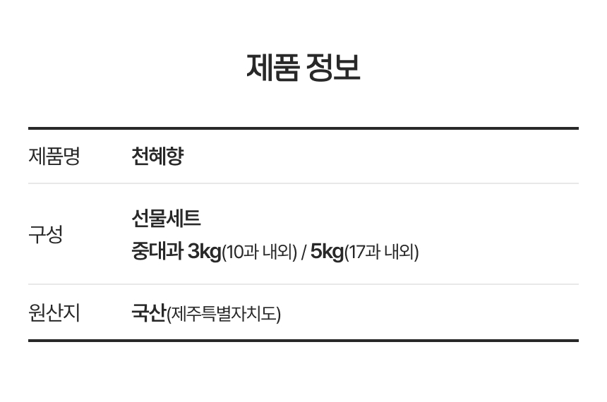 | 상품구성 | 천혜향3kg,천혜향5kg/1box |