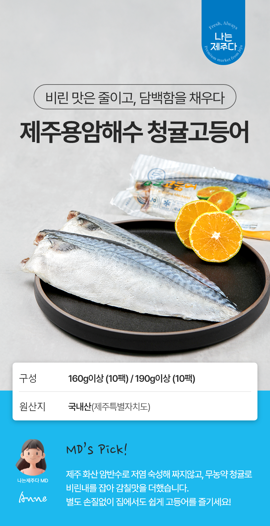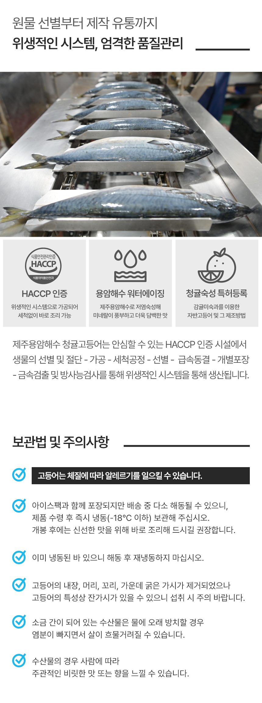 | 품목 또는 명칭 | 제주용암해수 청귤고등어 |