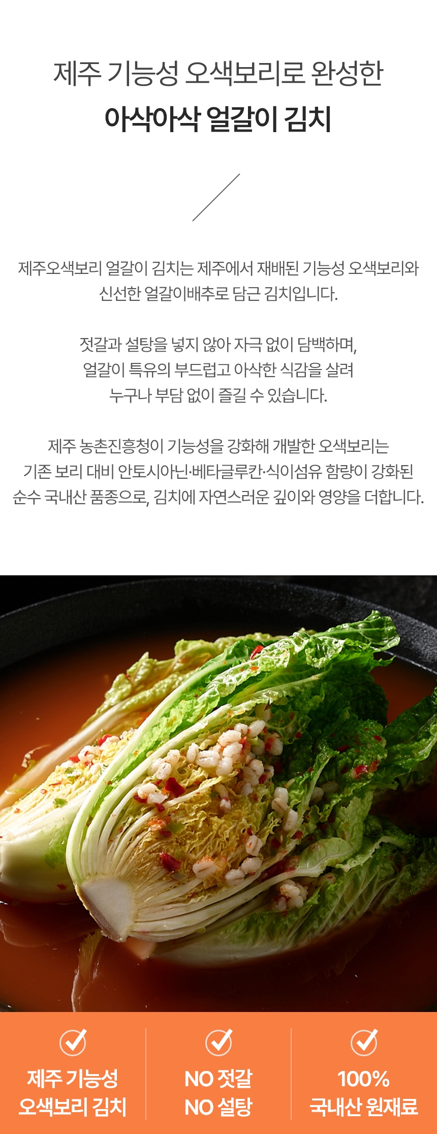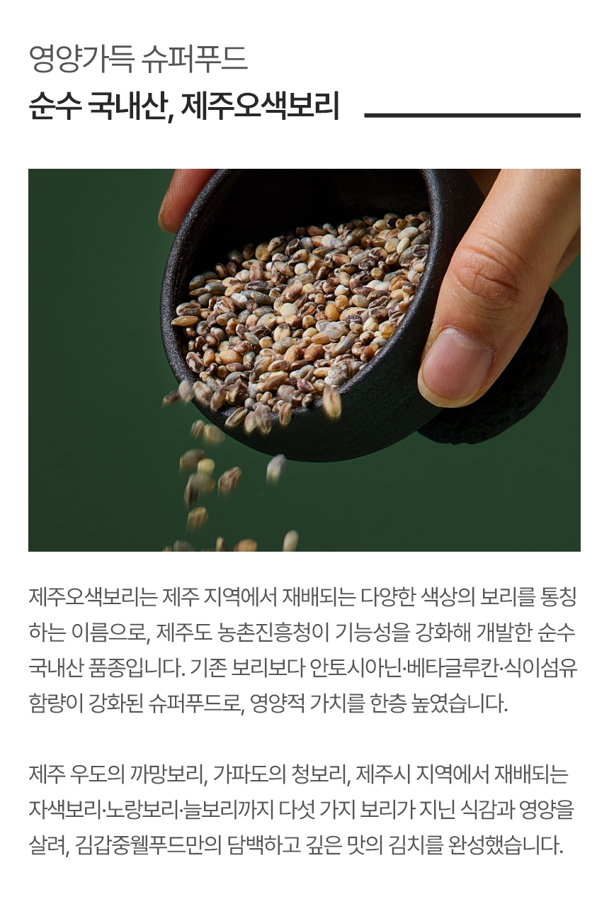 | 원재료명 및 함량 | 얼갈이(국산), 오색보리(가파도),고추(국산),마늘(국산),생강(국산),소금(국산) |