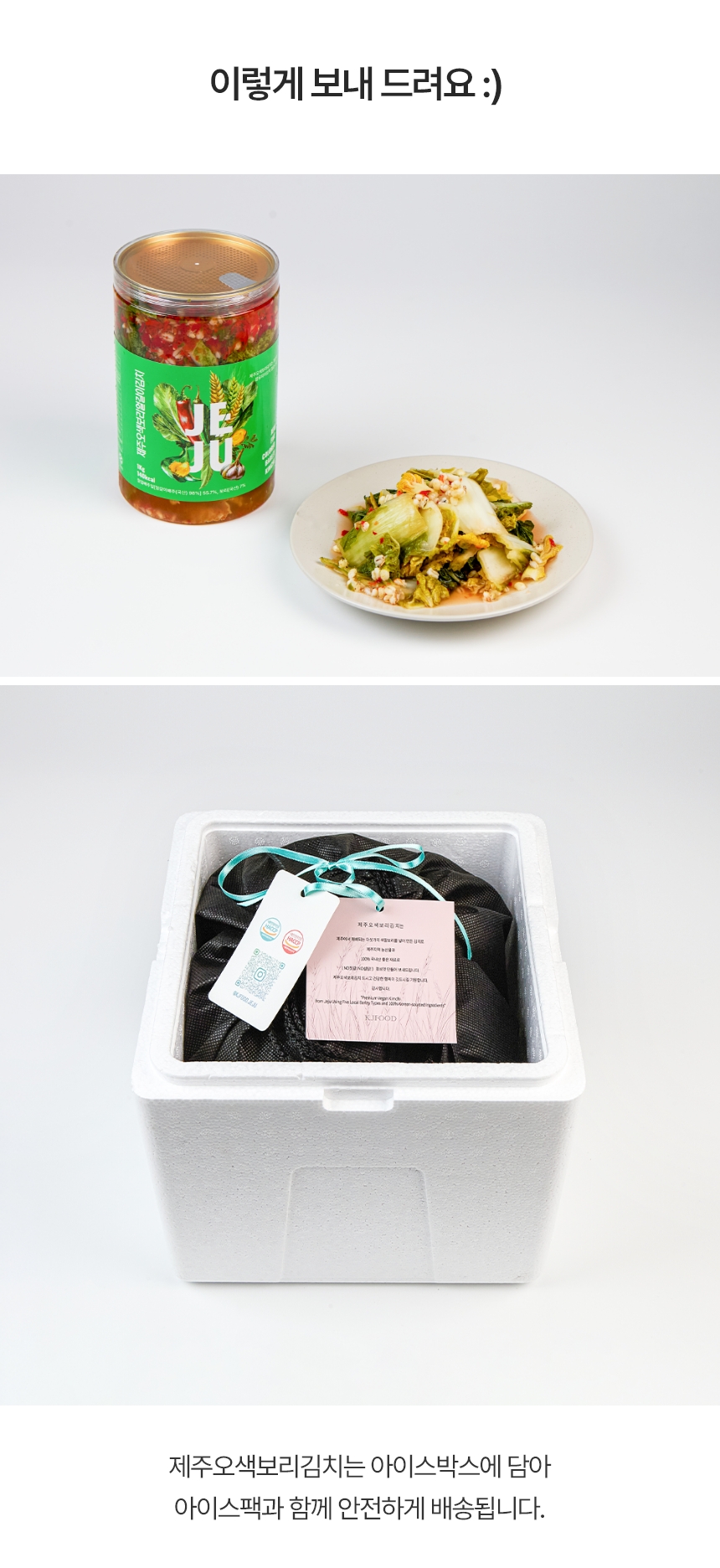 | 포장단위별 내용물의 용량(중량),수량 | 제주오색 보리김치(얼갈이) 3캔,4캔/1box |