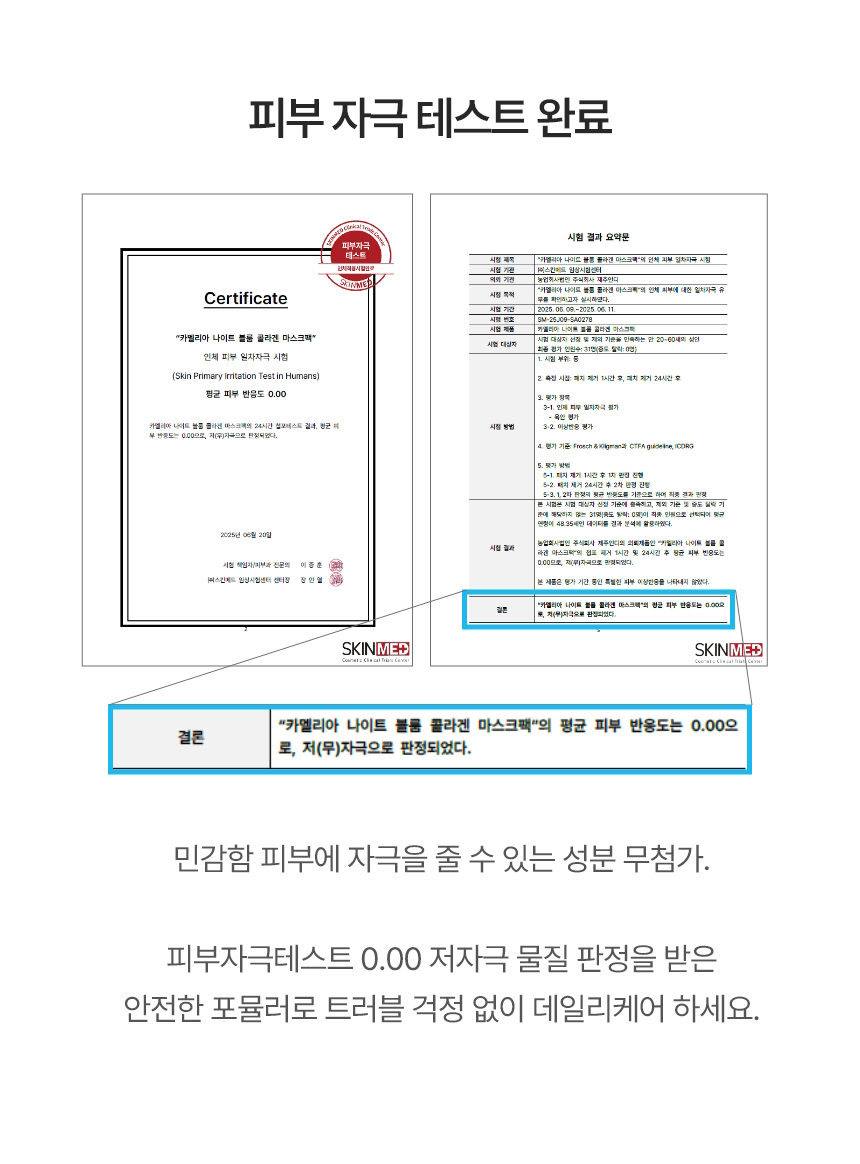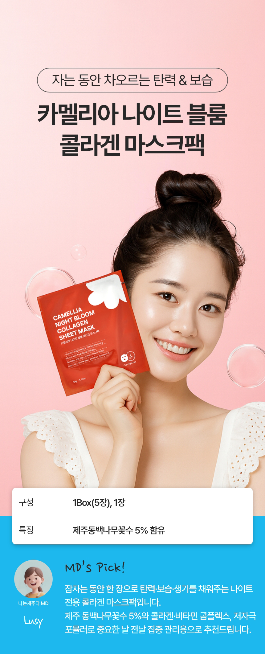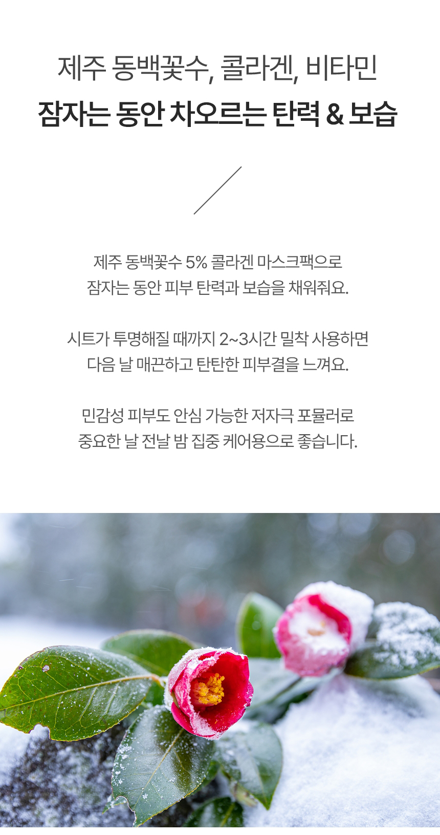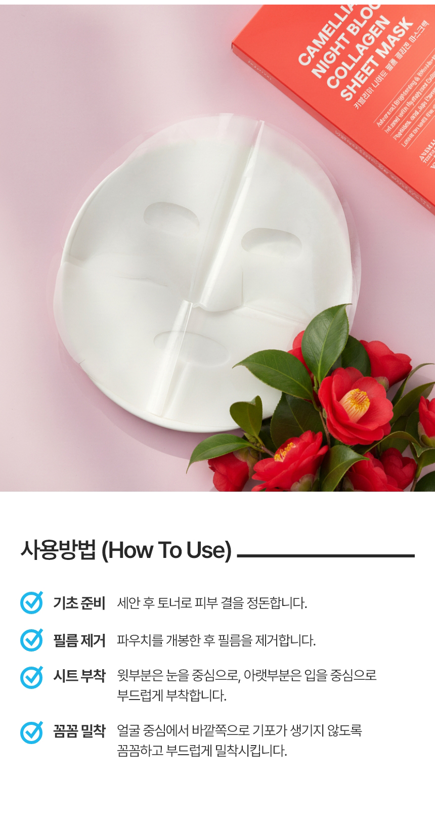 | 용량 또는 중량 | 카멜리아 나이트 블룸 콜라겐 마스크팩 1개당 34g |