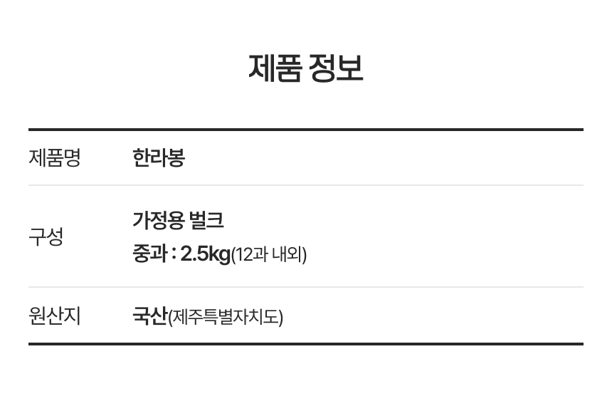 | 상품구성 | 한라봉 가정용 3kg, 한라봉 가정용 5kg |