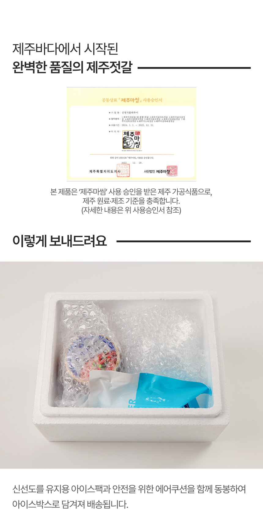 | 생산자 및 소재지 | 신영식품 하루미 - 제주특별자치도 제주시 구좌읍 세화 3길 24 |