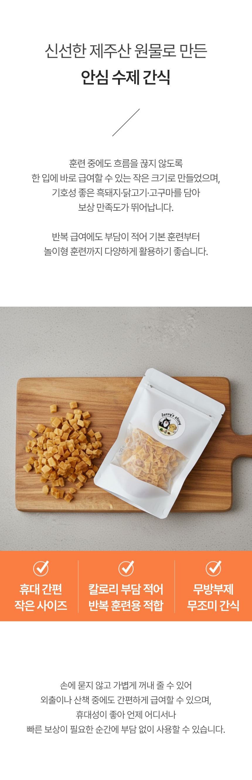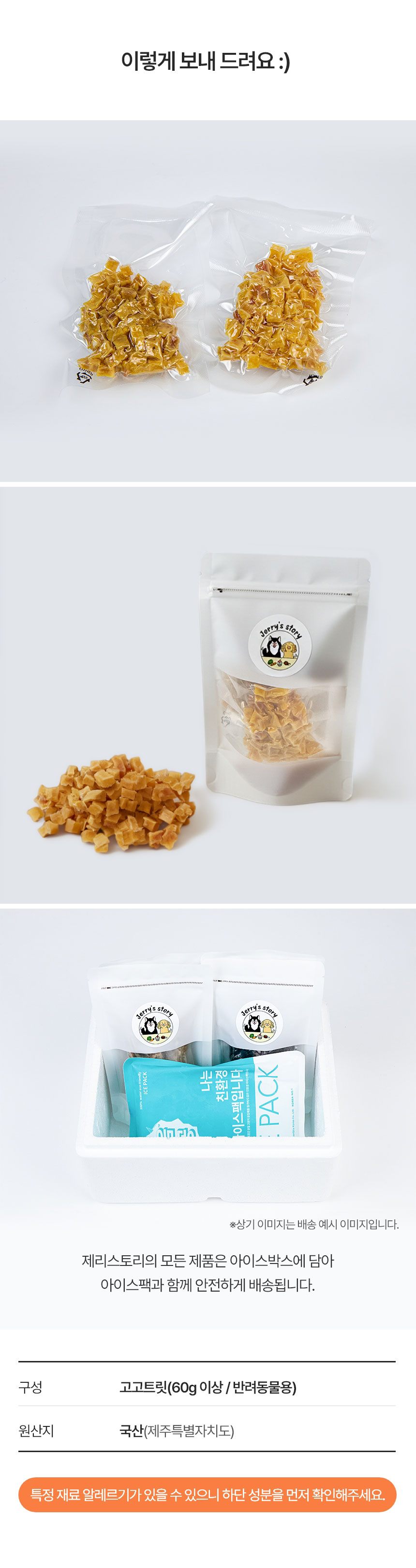 - 제리스토리는 주문확인 후 간식을 제조합니다.(주문 후 3일이내 우체국 택배 익일특급 발송)