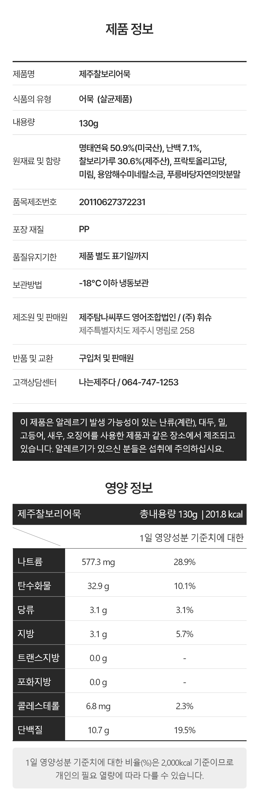 | 식품등의표시·광고에관한법률에 따른 표시사항 | 해당사항없 |