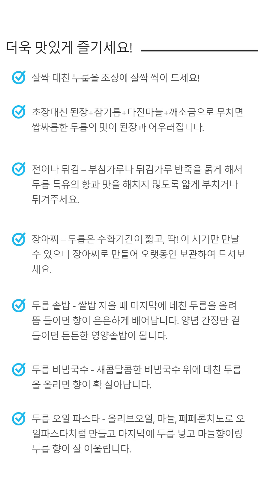 | 포장단위별 내용물의 용량(중량),수량,크기 | 참두릅 1kg/1box |
