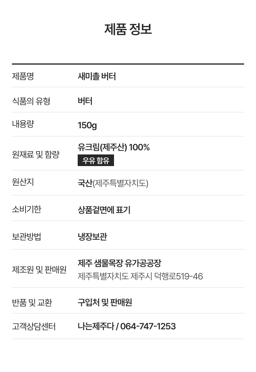 | 생산자 및 소재지 | 제주 샘물목장 유가공공장 |