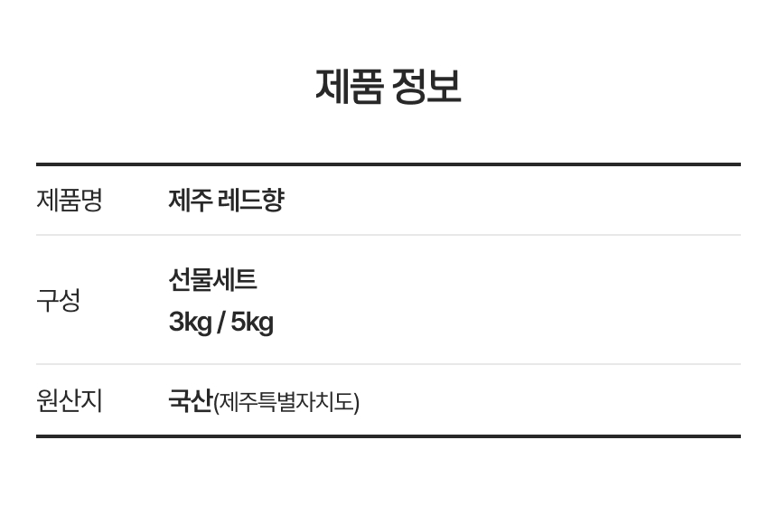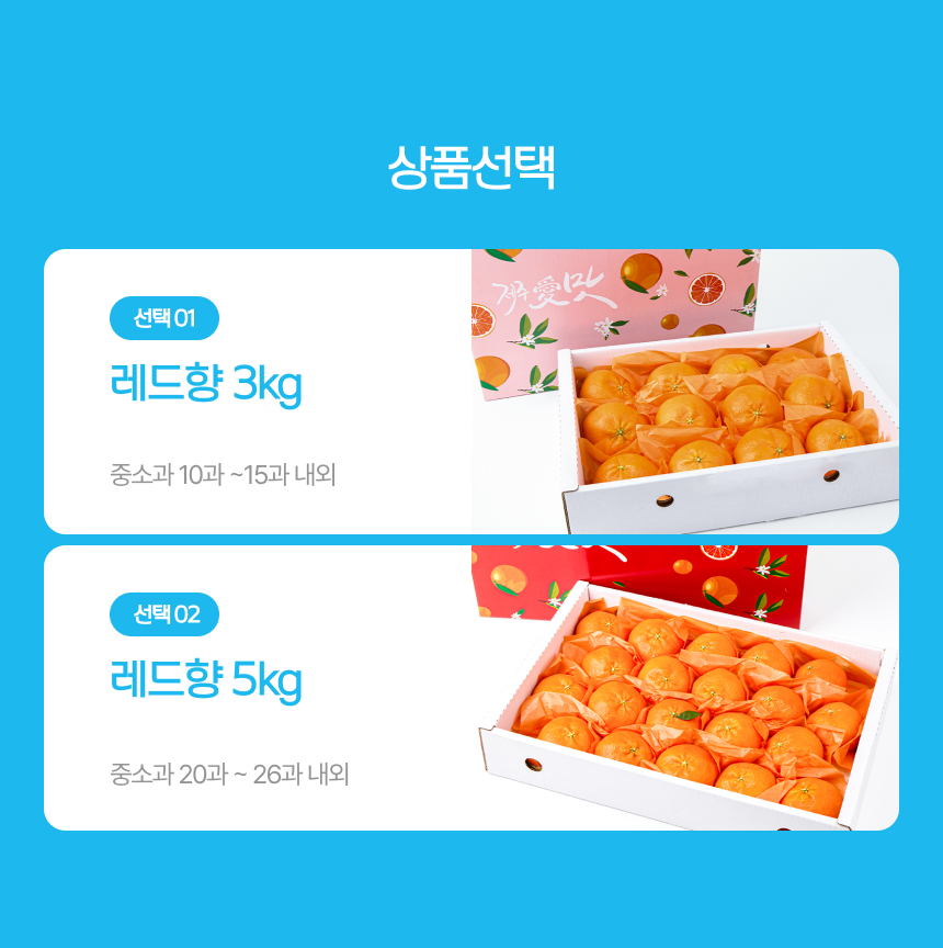 | 상품구성 | 레드향 3kg(10과~15과),제주 레드향 5kg(20과~26과) |