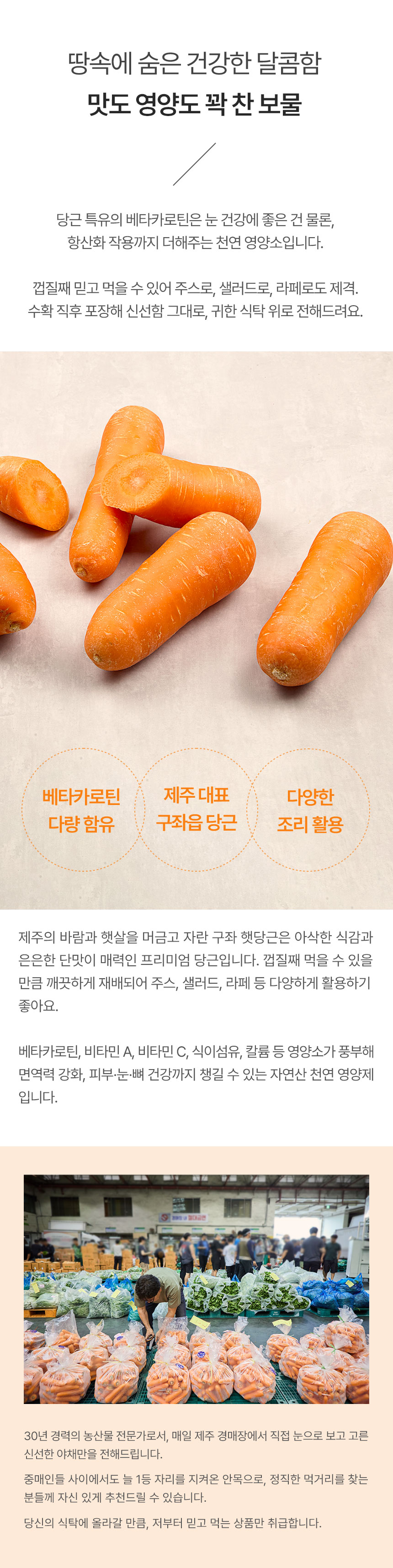 | 포장단위별 내용물의 용량(중량),수량,크기 | 제주 당근 1kg/1box/신선제품은 중량으로 표기하므로 크기를 표시하지 않습니다. |