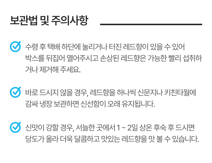 - 단순 변심, 개인적인 입맛 차이, 보관 부주의등 구매자 귀책 사유는 교환·반품 대상에 해당하지 않습니다.