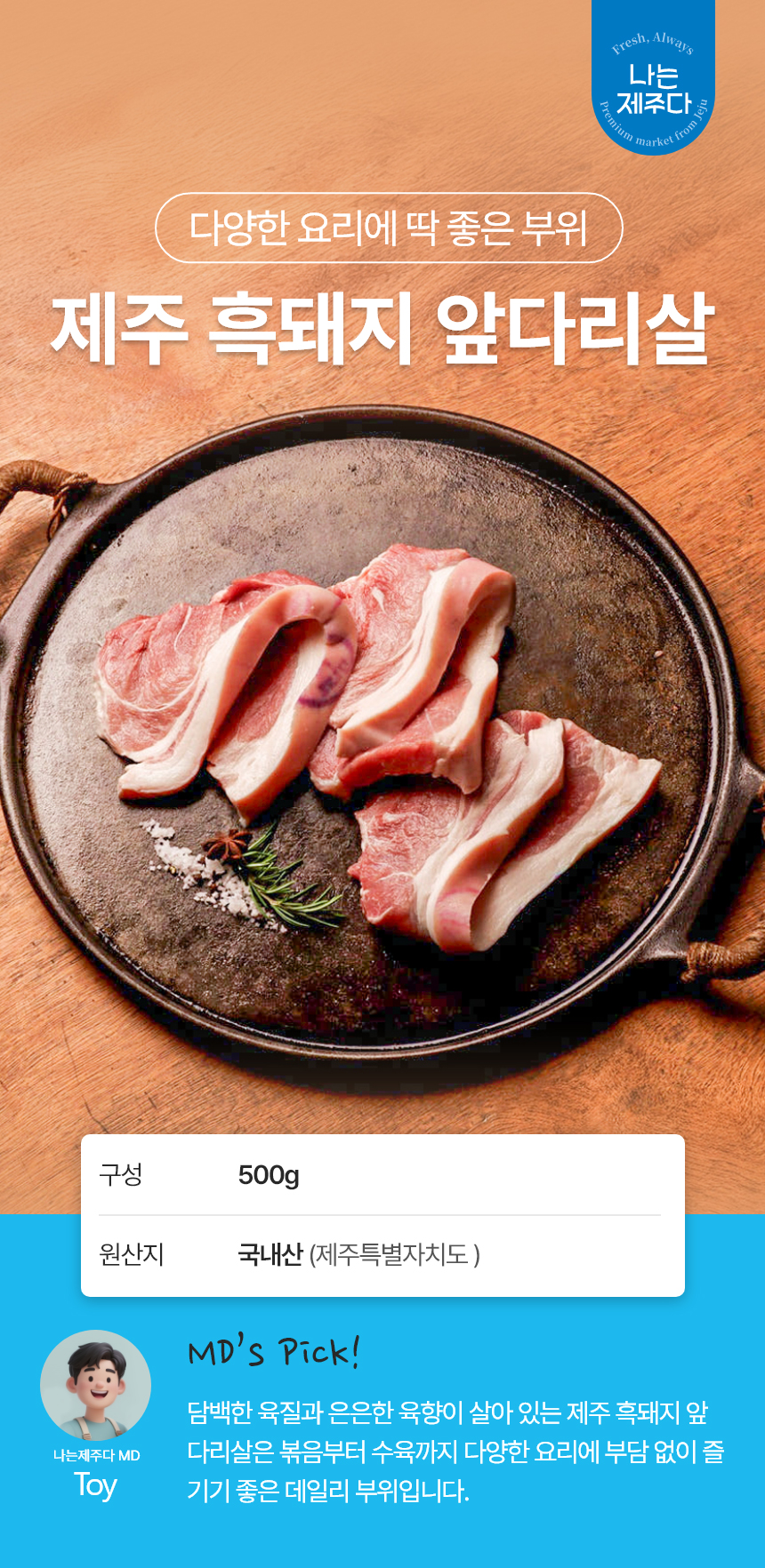 | 품목 또는 명칭 | 흑돈 미박 앞다리 500g |