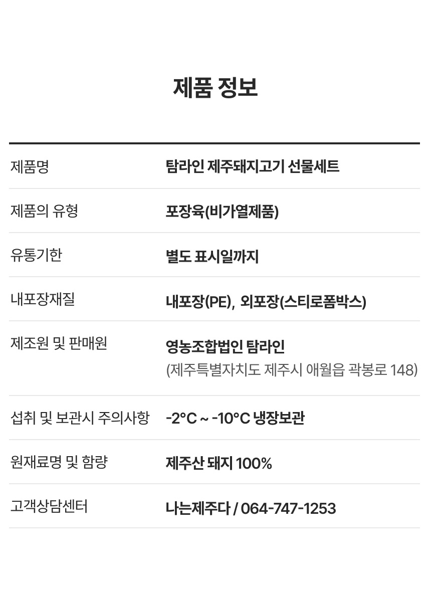 | 품목 또는 명칭 | 제주 돼지고기 선물세트 |