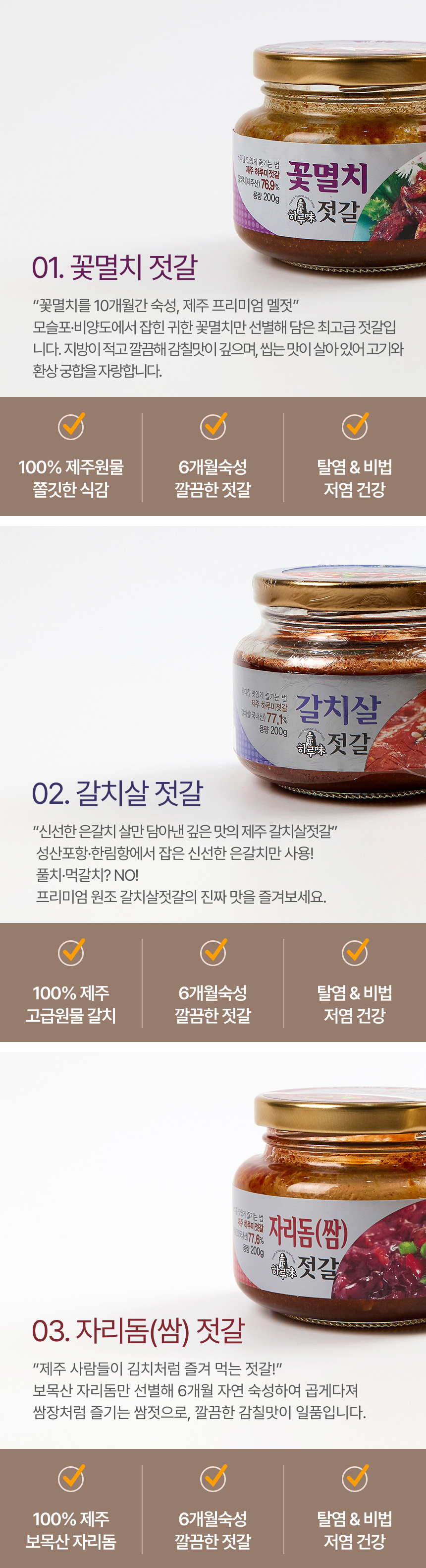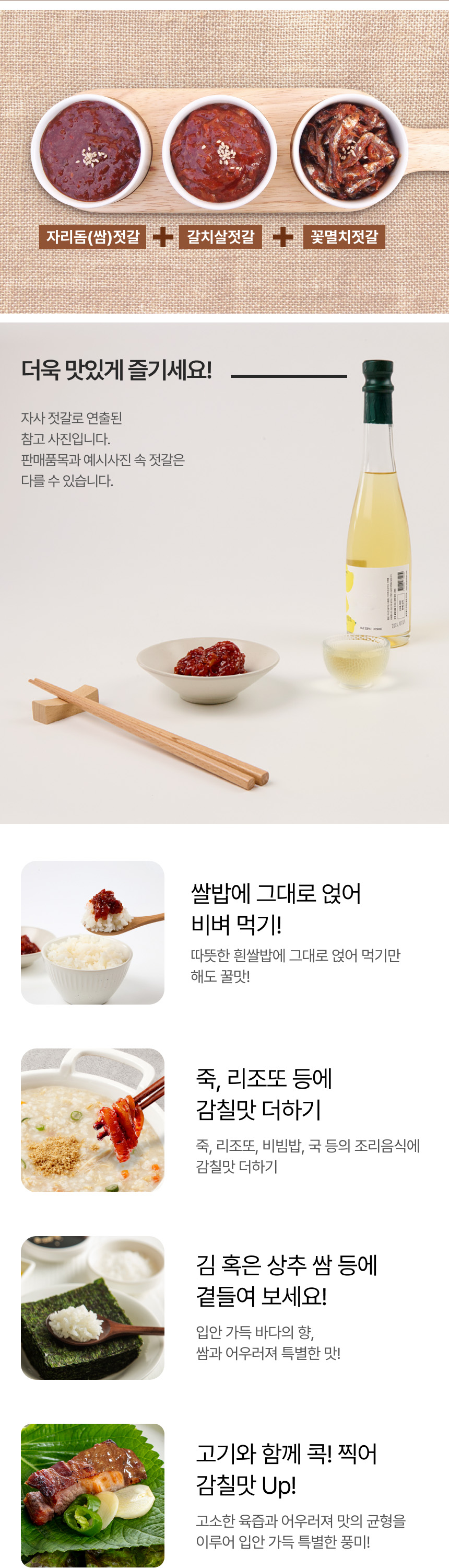| 제품명 | 하루미3종세트 200g (갈치살젓갈, 자리돔(쌈)젓갈, 꽃멸치젓갈 ) |