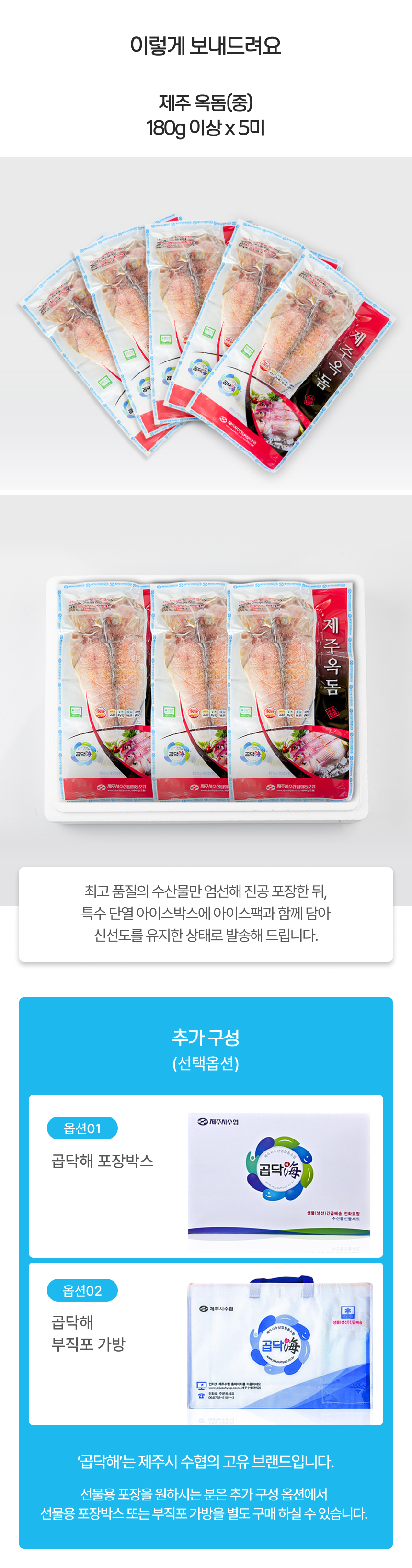 | 상품구성 | 제주옥돔(소) 180g 이상 5마리 |
